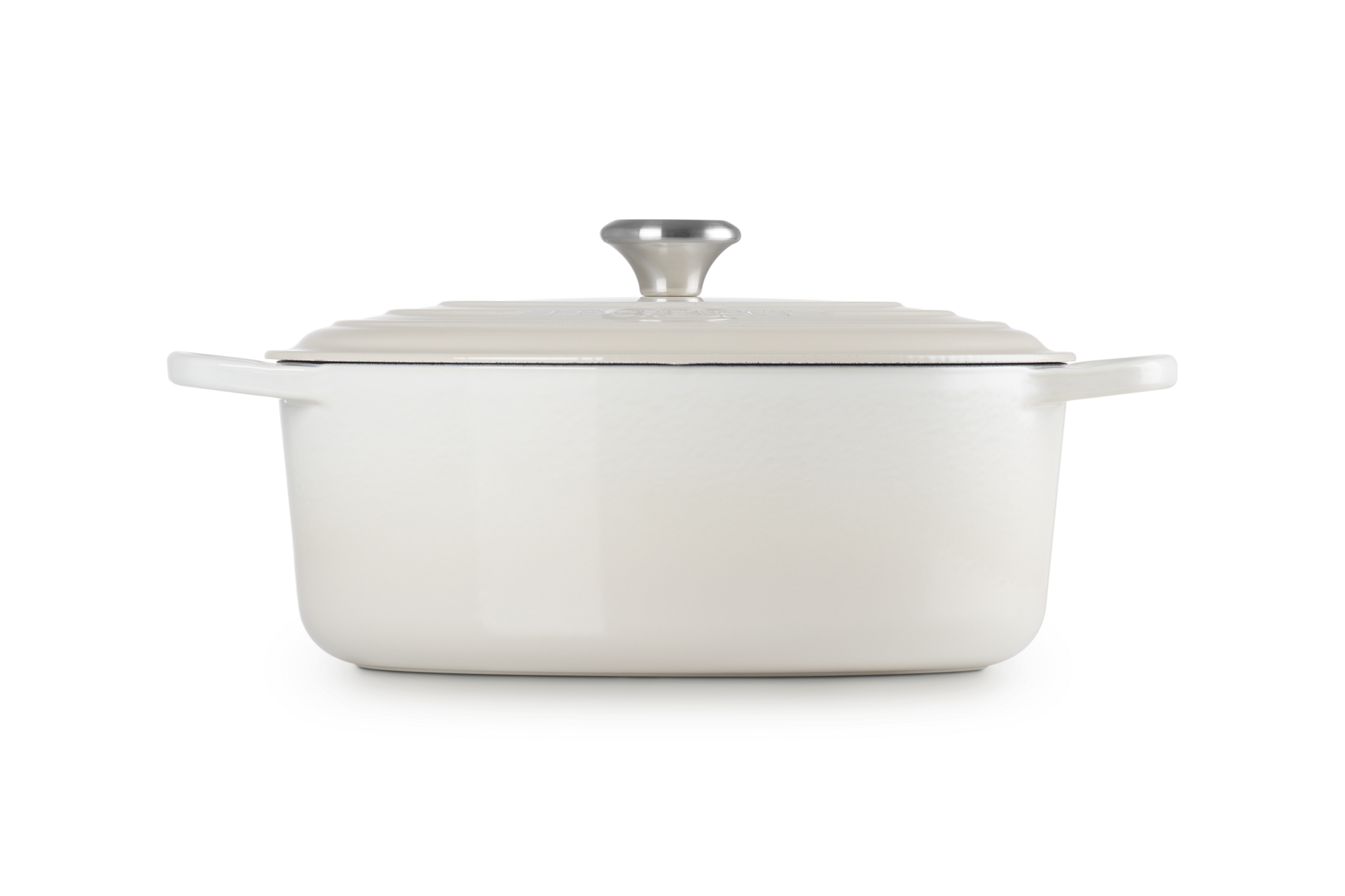 Seit fast einem Jahrhundert ist der gusseiserne Bräter von Le Creuset weltweit bei Köchen beliebt. Ideal für Schmorgerichte, Braten, Suppen, Aufläufe und zum Backen – ein echtes Multitalent für aromatische, geschmackvolle Mahlzeiten. Für optimale Ergebnisse bei mittlerer bis niedriger Hitze garen und das Kochgeschirr langsam erhitzen. Der Bräter darf niemals leer erhitzt werden, um Materialschäden zu vermeiden. Außerdem das Produkt nicht über Glaskeramik- oder Herdplatten ziehen, sondern stets anheben, um Kratzer und Beschädigungen an Unterseite und Oberfläche zu vermeiden.