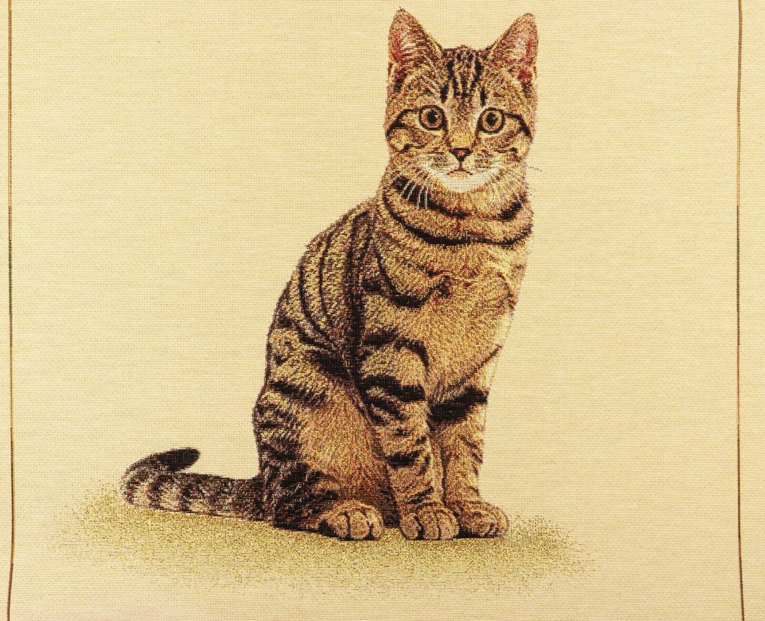Robuster und zugeschnittener Gobelin mit Katzen Webmotiv in den Maßen 46 x 46 cm. Geeignet z.B. für Beutel und Kissen.