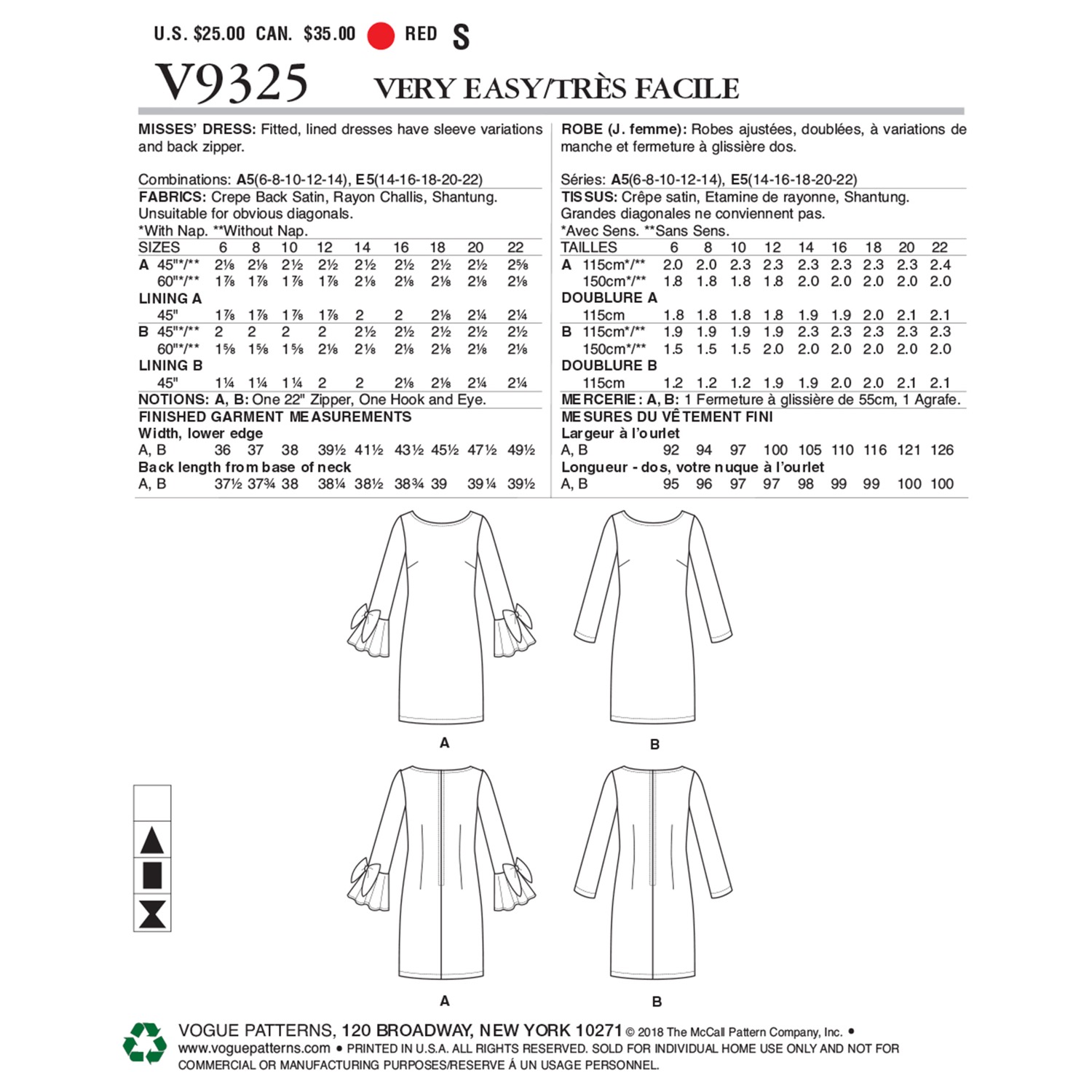 Einzelschnittmuster von VOGUE Patterns mit Mehrgrößenschnitt in Originalgröße auf Papierbögen zum Auskopieren oder Ausschneiden.
