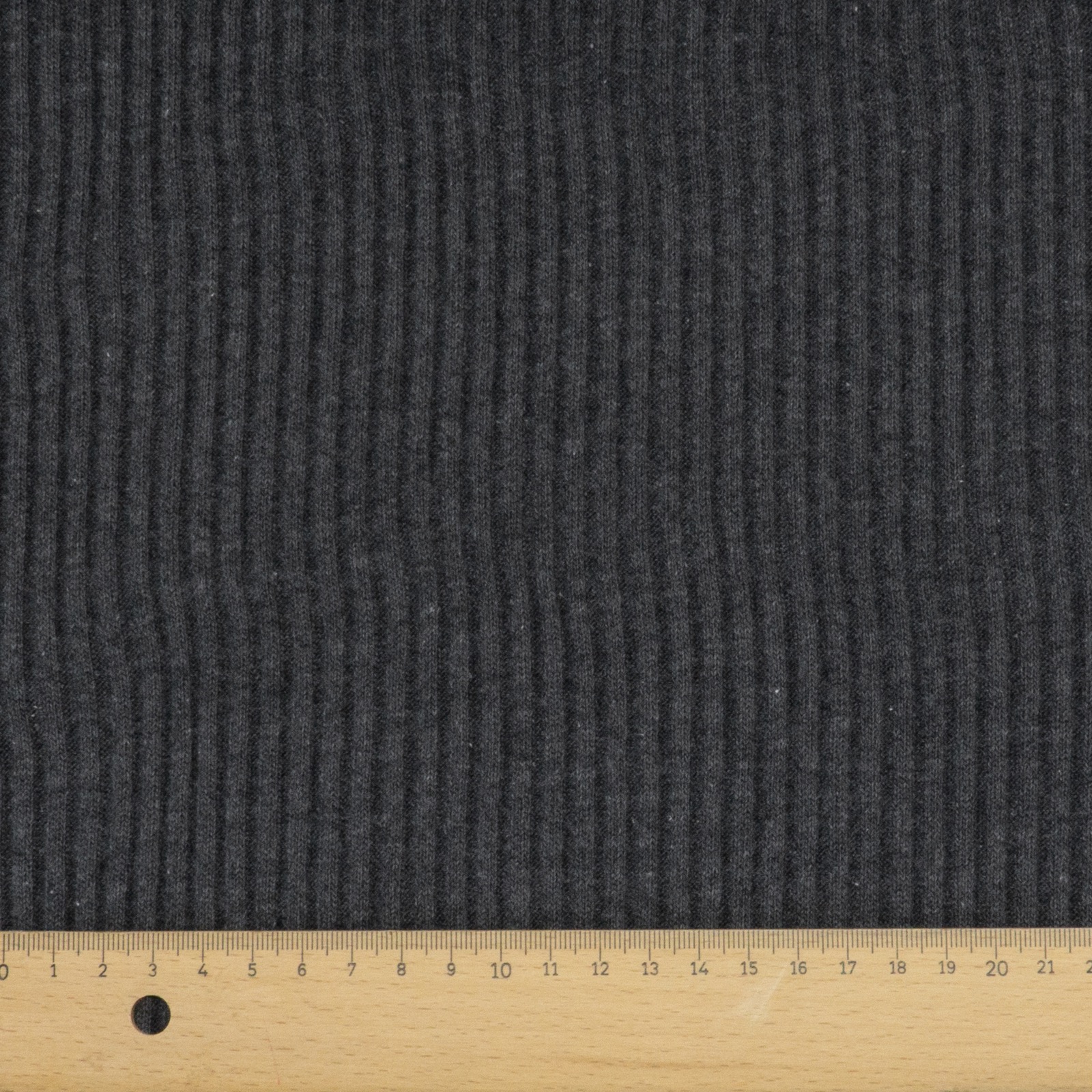 elastischer Bündchenstoff, dunkelgrau, meliert, gerippt
