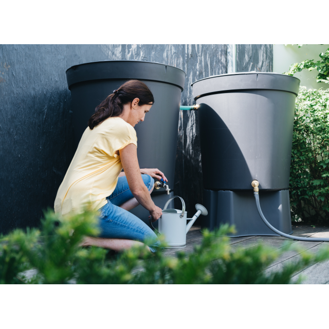 Kompaktes Anschluss Set für Regentonnen mit den Anschlussgrössen IG 1/2″ und AG 3/4″. Einfache Montage und stabile Verbindung dank Schnellkupplung.