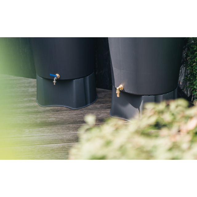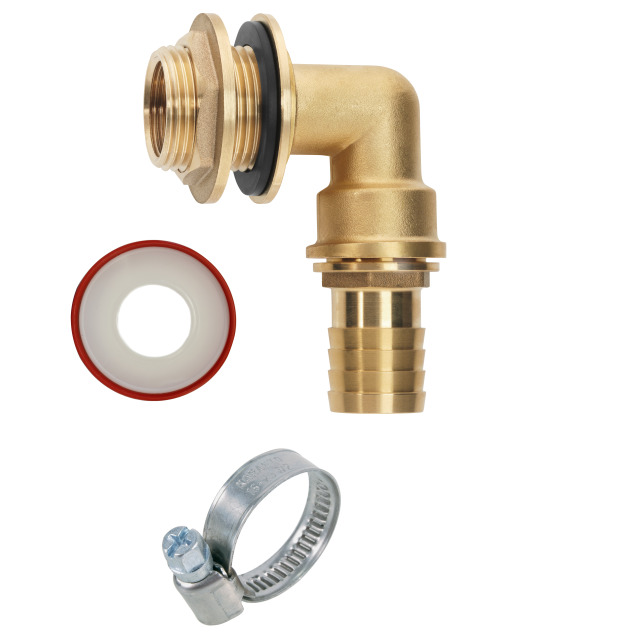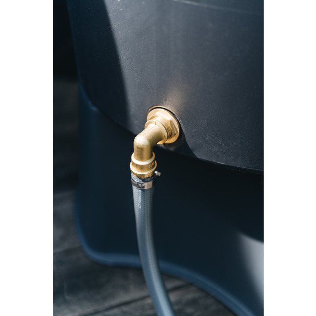 Praktisches Set zur einfachen Verbindung von Regentonnen mit 1″ Tülle und 90 Grad Winkel, ausgestattet mit AG 1″ Anschluss.