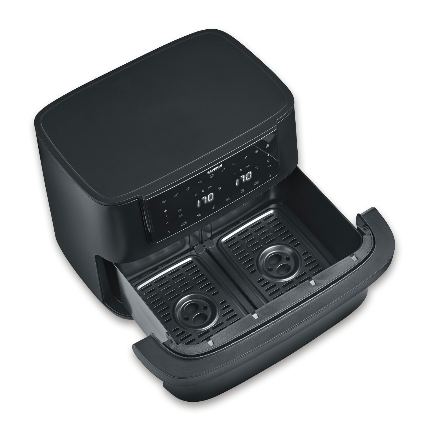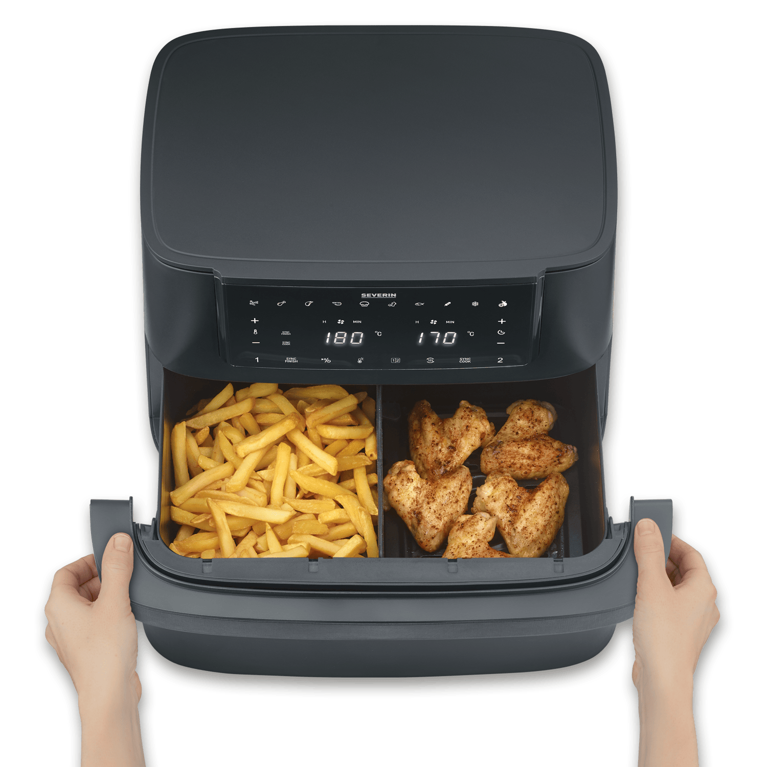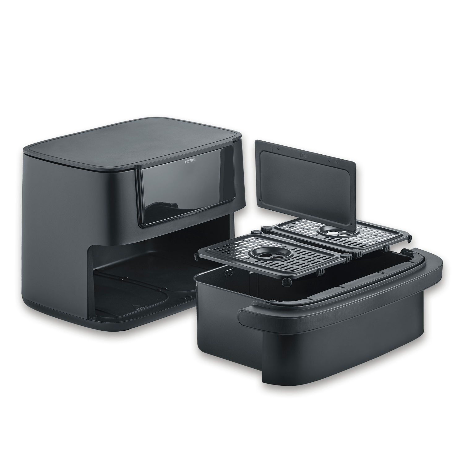 De Black Line “Flex” biedt maximale veelzijdigheid: de innovatieve Max-zone kan worden gebruikt als een extra grote kookruimte, met een scheidingswand als twee aparte zones of als één enkele zone – ideaal voor alle soorten koken, van snel solokoken tot diners met het hele gezin. Dankzij de intelligente heteluchtcirculatie, vooraf ingestelde programma’s en moderne aanraakbediening kunnen alle gerechten gemakkelijk en met knapperig resultaat worden bereid. Black Line “Flex” – voor iedereen die meer flexibiliteit nodig heeft in de keuken. Zonder compromissen.