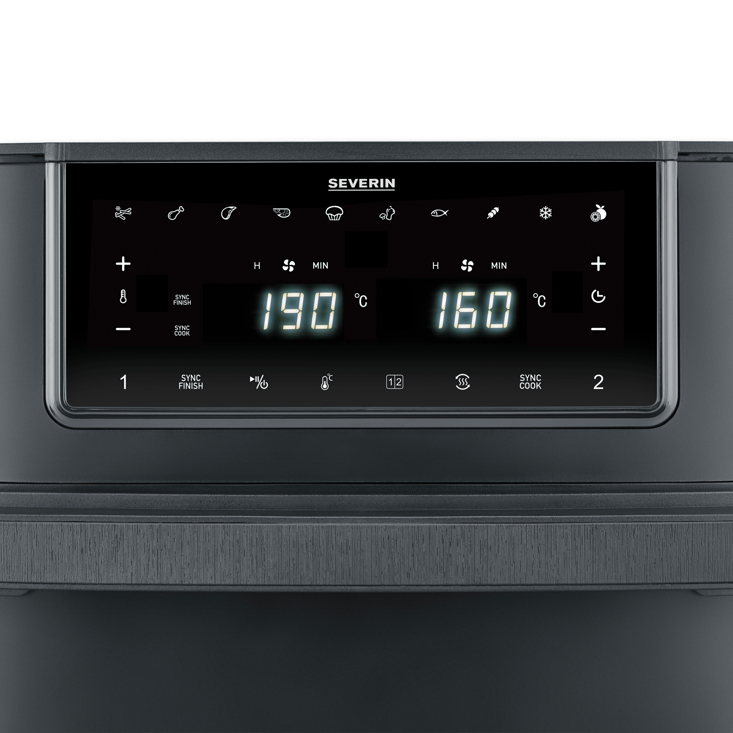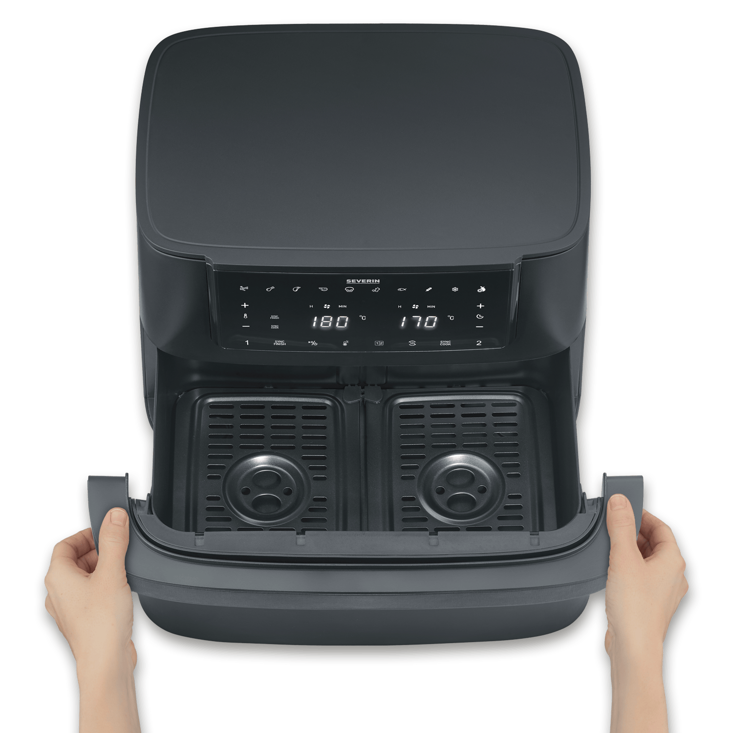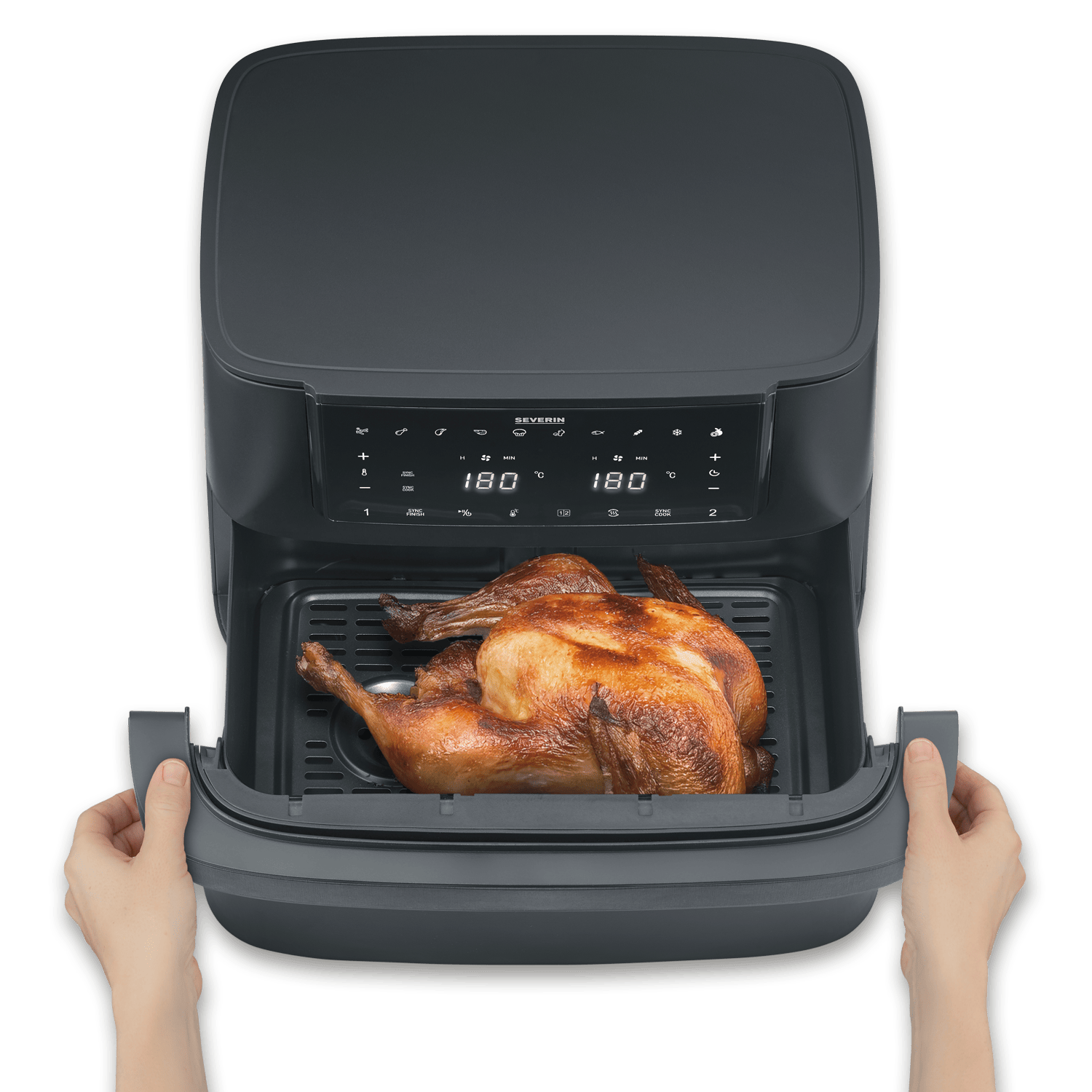 De Black Line “Flex” biedt maximale veelzijdigheid: de innovatieve Max-zone kan worden gebruikt als een extra grote kookruimte, met een scheidingswand als twee aparte zones of als één enkele zone – ideaal voor alle soorten koken, van snel solokoken tot diners met het hele gezin. Dankzij de intelligente heteluchtcirculatie, vooraf ingestelde programma’s en moderne aanraakbediening kunnen alle gerechten gemakkelijk en met knapperig resultaat worden bereid. Black Line “Flex” – voor iedereen die meer flexibiliteit nodig heeft in de keuken. Zonder compromissen.