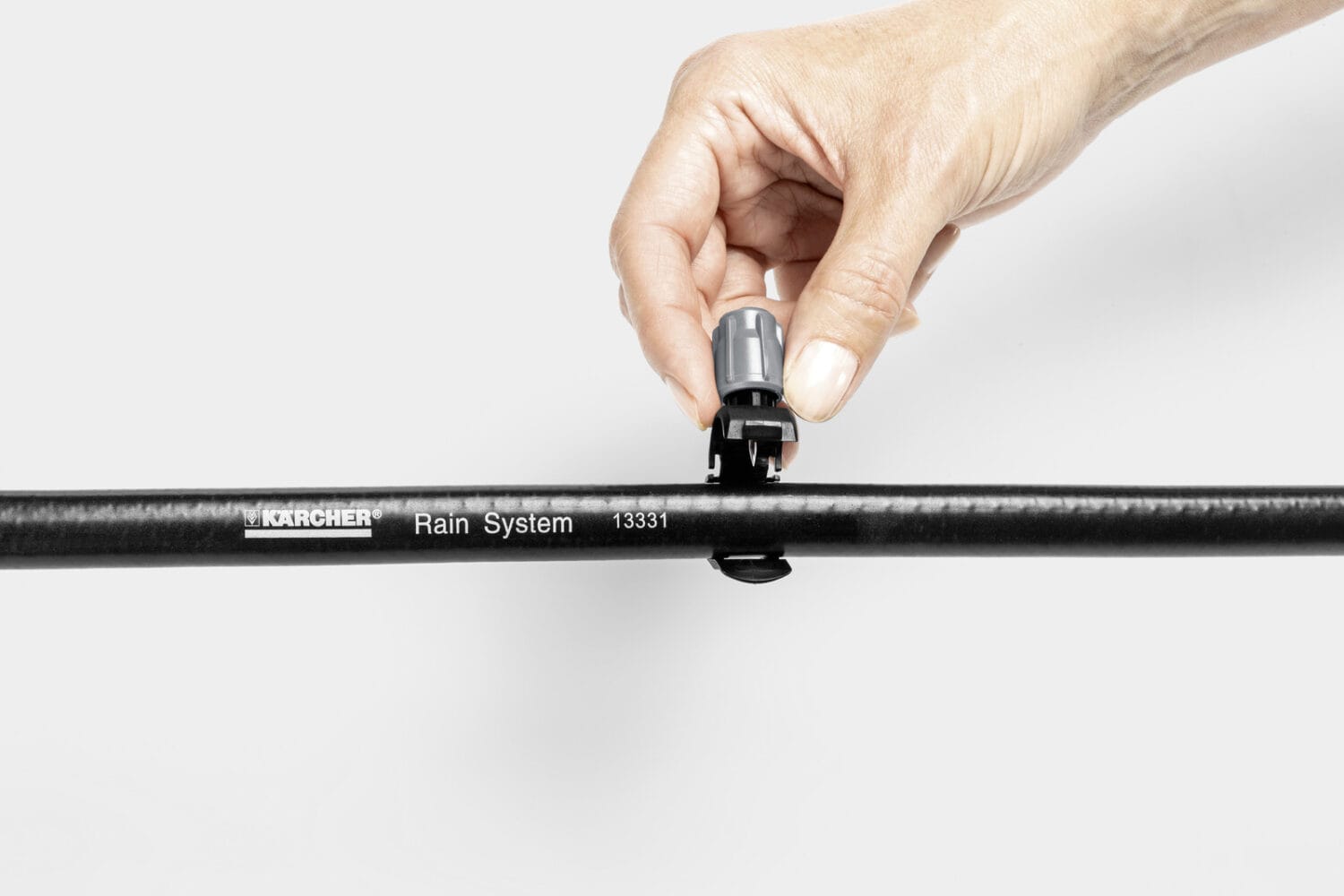 Die Tropfmanschetten mit integrierter Nadel können an jeder Stelle des Kärcher Rain System® Schlauchs angebracht werden. Der regulierbare Tropfer ermöglicht eine direkte Pflanzenbewässerung.