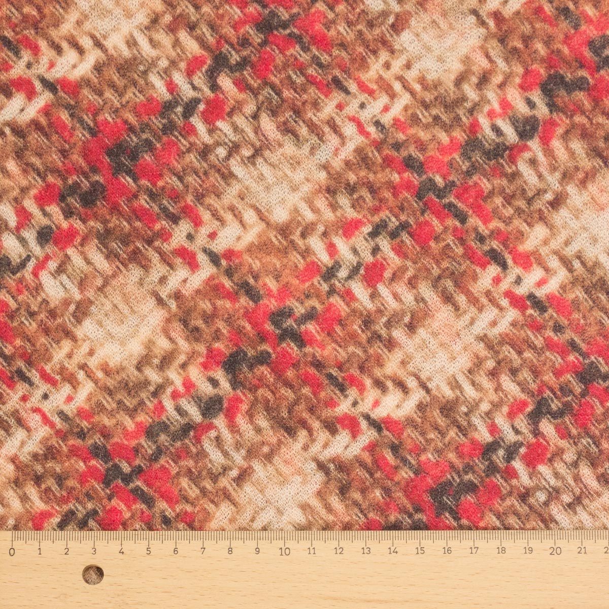 Leichter Feinstrick, beigebraun, rot, fotorealistisch bedruckt