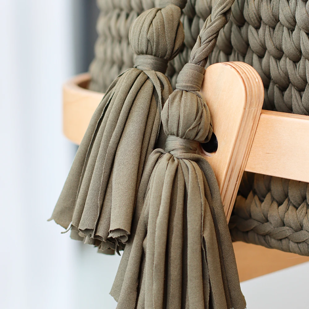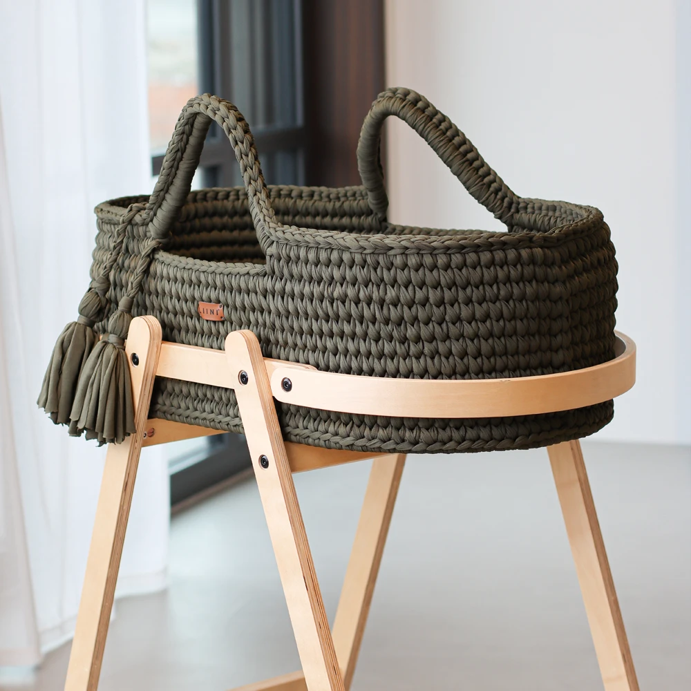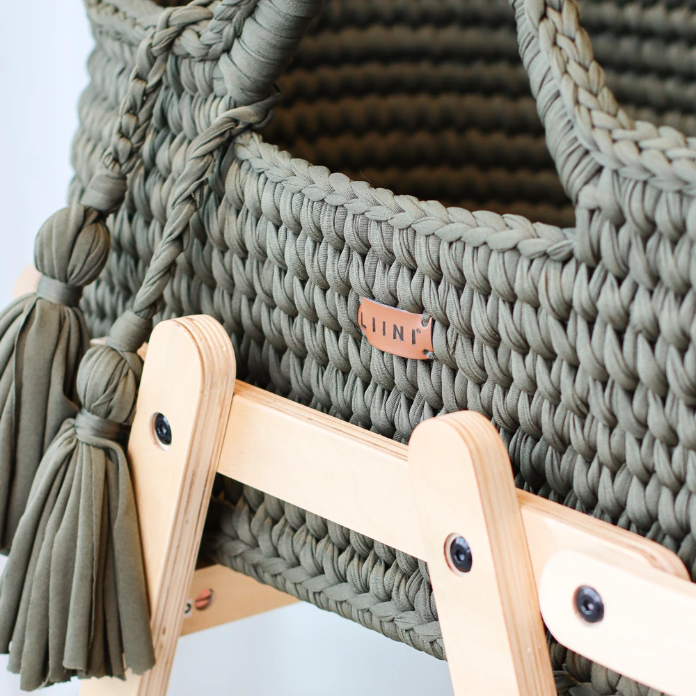 Die Babywiege von LIINI® wird aus robustem, nachhaltig gewonnenem Holz gefertigt und der Moseskorb wird von uns in Handarbeit gehäkelt. Der hochwertige Matratzenbezug aus Musselin-Stoff rundet das Design der Babywiege ab – ideal für stylische Eltern und liebevoll eingerichtete Kinderzimmer.