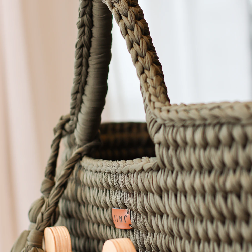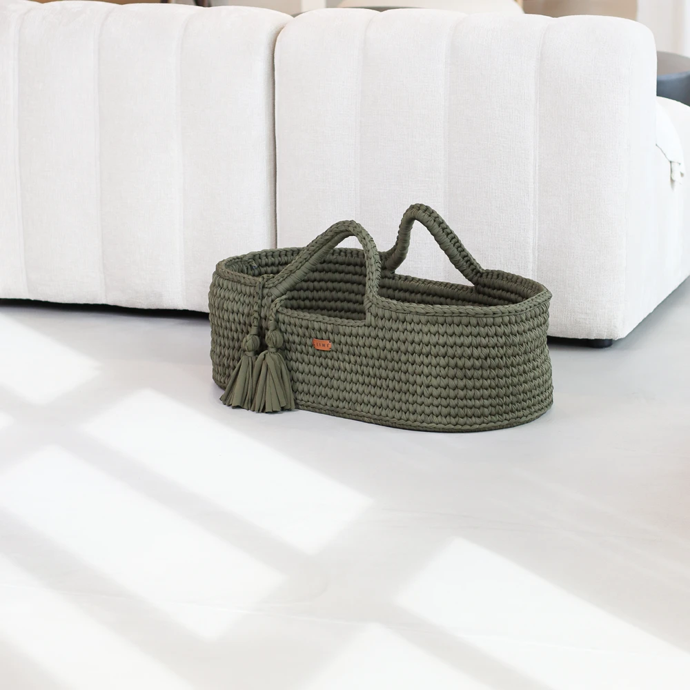 - Handgehäkelter Moseskorb aus hochwertigen Materialien