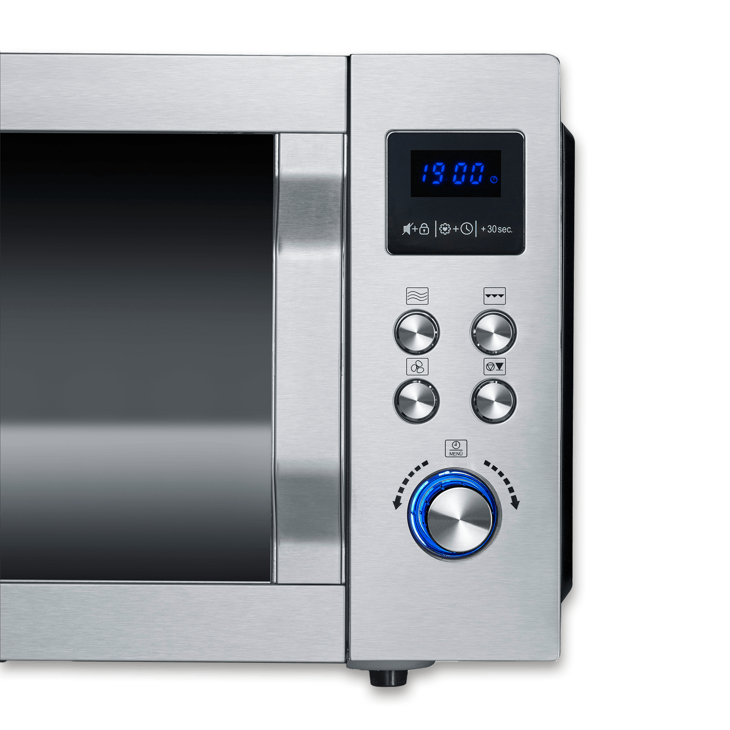 Innovadora tecnología de fondo de cristal: ¡calentar, cocinar y hornear sin plato giratorio! Las cazuelas cuadradas y los platos grandes no son ningún problema para el MW 7758 gracias a su superficie útil hasta un 80% mayor*. Gracias a la innovadora tecnología de base cerámica con reflector de microondas, este horno microondas no necesita en absoluto un plato giratorio convencional y garantiza resultados perfectos. Gracias a la función grill integrada y a la función de aire ultracaliente de hasta 230°C, podrá hornear o preparar otros platos fácilmente. La rejilla separada permite incluso cocinar en dos niveles, de modo que se pueden preparar dos platos al mismo tiempo. La base plana de cerámica garantiza una limpieza sin esfuerzo y se limpia fácilmente con un paño húmedo. El manejo es sencillo: gracias a la pantalla LEDTouch y al concepto “Easy-Select”, se puede acceder rápidamente a todas las funciones. Los tonos de los botones se pueden activar o desactivar a voluntad. 8 programas automáticos, 10 niveles de potencia y descongelación por peso o tiempo completan el conjunto. Es bueno saberlo: Tres platos favoritos pueden programarse y llamarse en cualquier momento pulsando un botón.