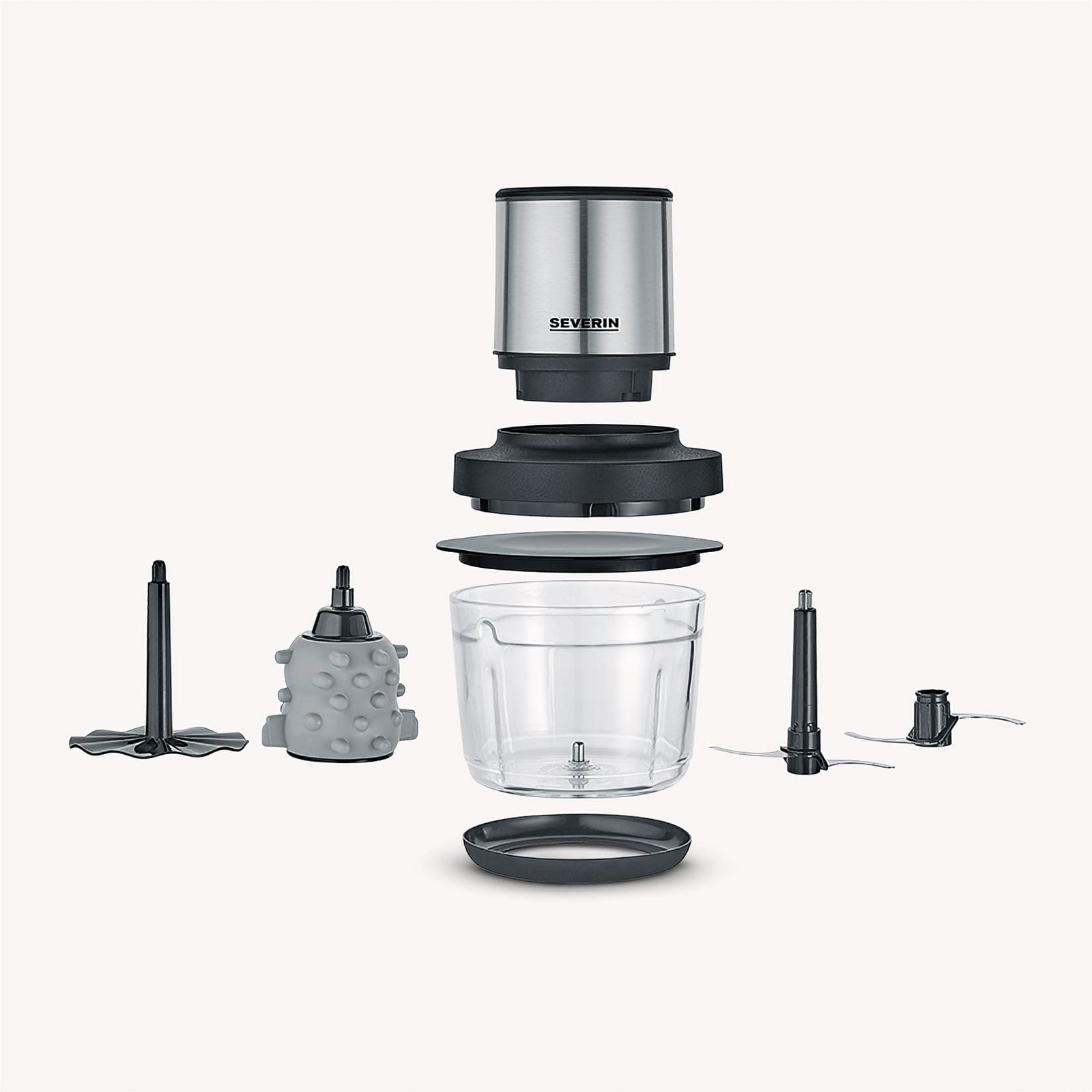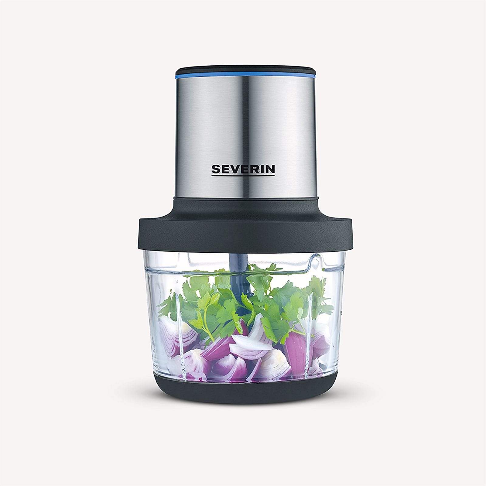 Picar y triturar sin cables de por medio ya es posible con la trituradora universal inalámbrica de SEVERIN. El molesto picor de ojos que sufrimos al cortar cebollas es cosa del pasado. Pero eso no es todo: con este aparato, podrá picar carne o hielo, o rallar queso parmesano, con solo tocar un botón. También sirve para montar nata o mousse.