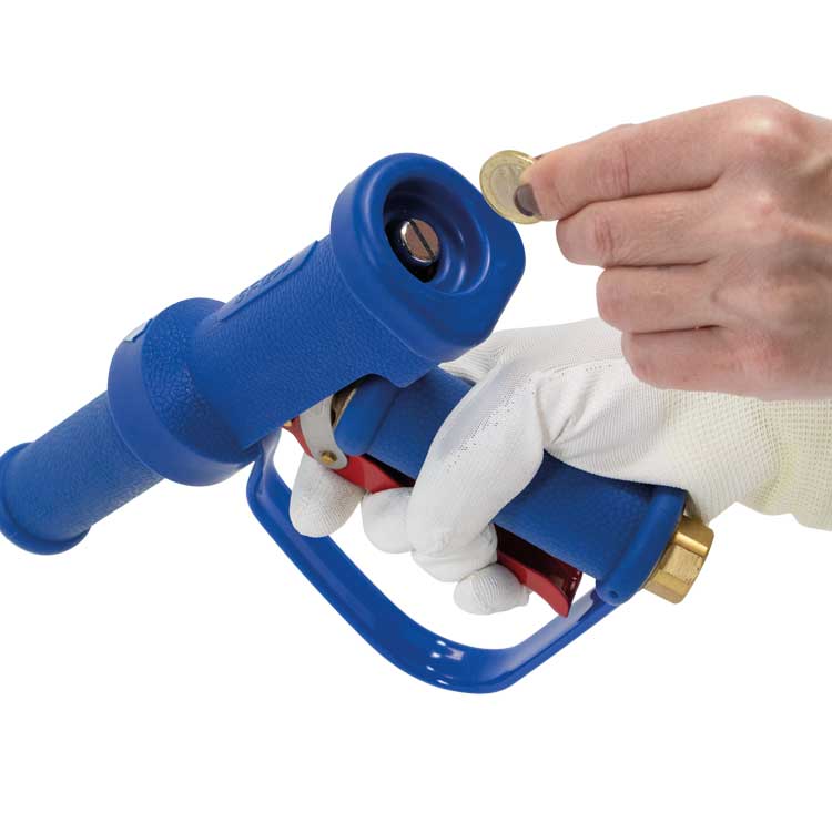 Sprühpistole mit stufenloser Spritzwinkelveränderung und Sicherungsbügel