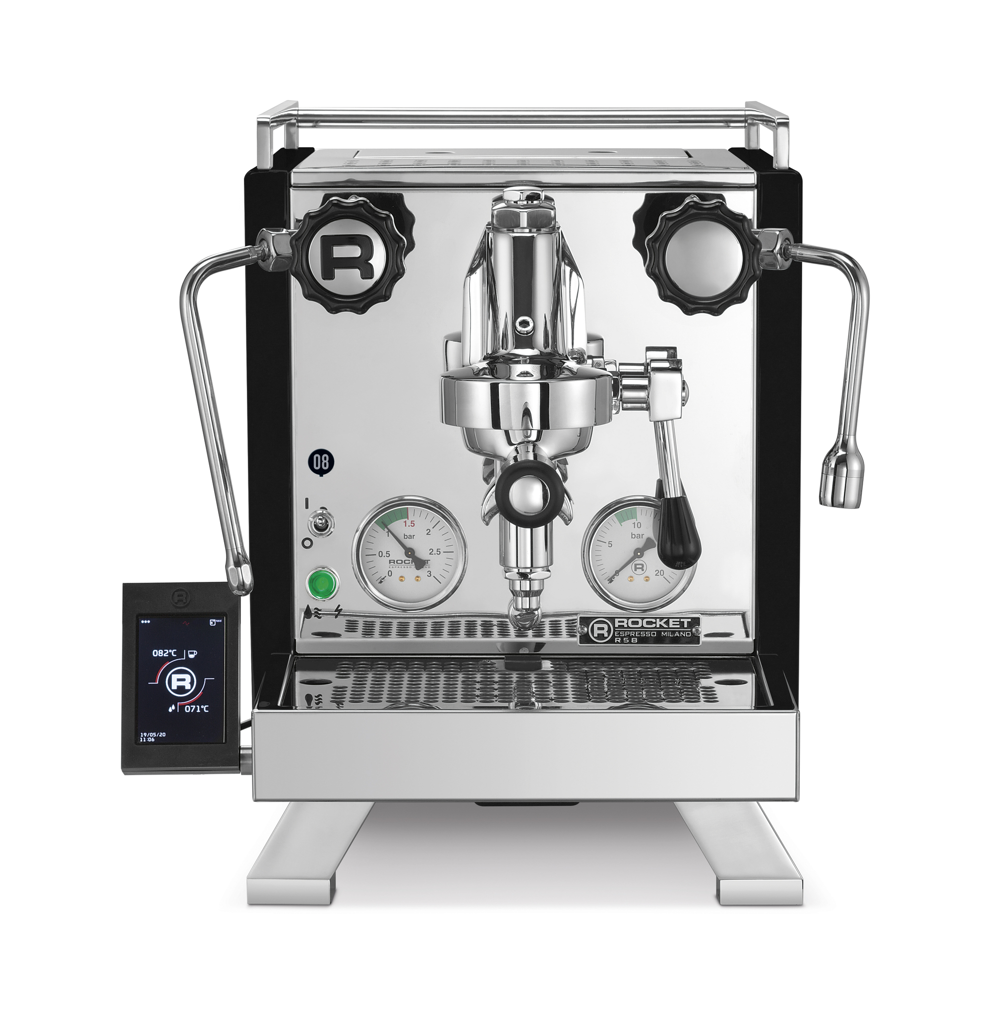 Zwei unabhängig voneinander betriebene PID-gesteuerte Kessel ermöglichen die optimale Extraktion jeder Kaffeeart oder Röstart. Rocket Espresso Schrägkessel-Technologie bedeutet präzise Gruppentemperatureinstellung und beispiellose Temperaturstabilität.