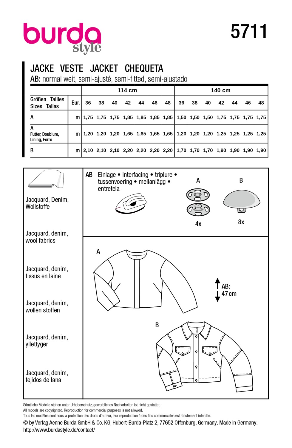 Schnittmuster Burda style, Jacke, gelb