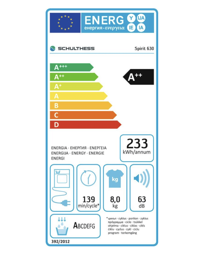 - 8 kg Wäsche in 96 Min. schranktrocken (Baumwolle, 1600 U/min)