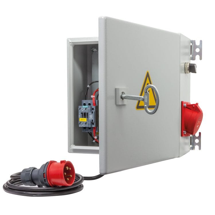 Einspeisung: 2 m Leitung mit CEE-Stecker 16 A, 400VAC, 50Hz, 3Ph/N/PE.