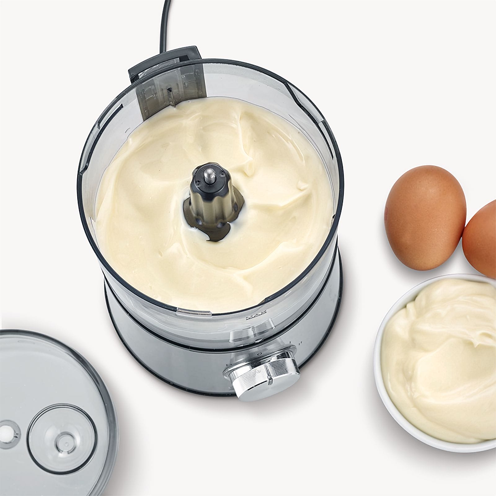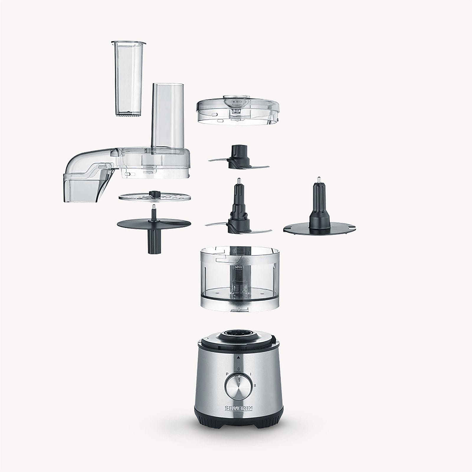 Il tritatutto compatto è dotato di lama in acciaio inox a 4 punte su due livelli e consente di regolare il grado di tritatura mediante una comoda manopola, per risultati perfettamente uniformi. Diverse funzioni in un unico prodotto: il tritatutto non si limita a sminuzzare, ma può anche essere utilizzato per grattugiare una gustosa forma di Parmigiano Reggiano o per preparare una maionese cremosa.