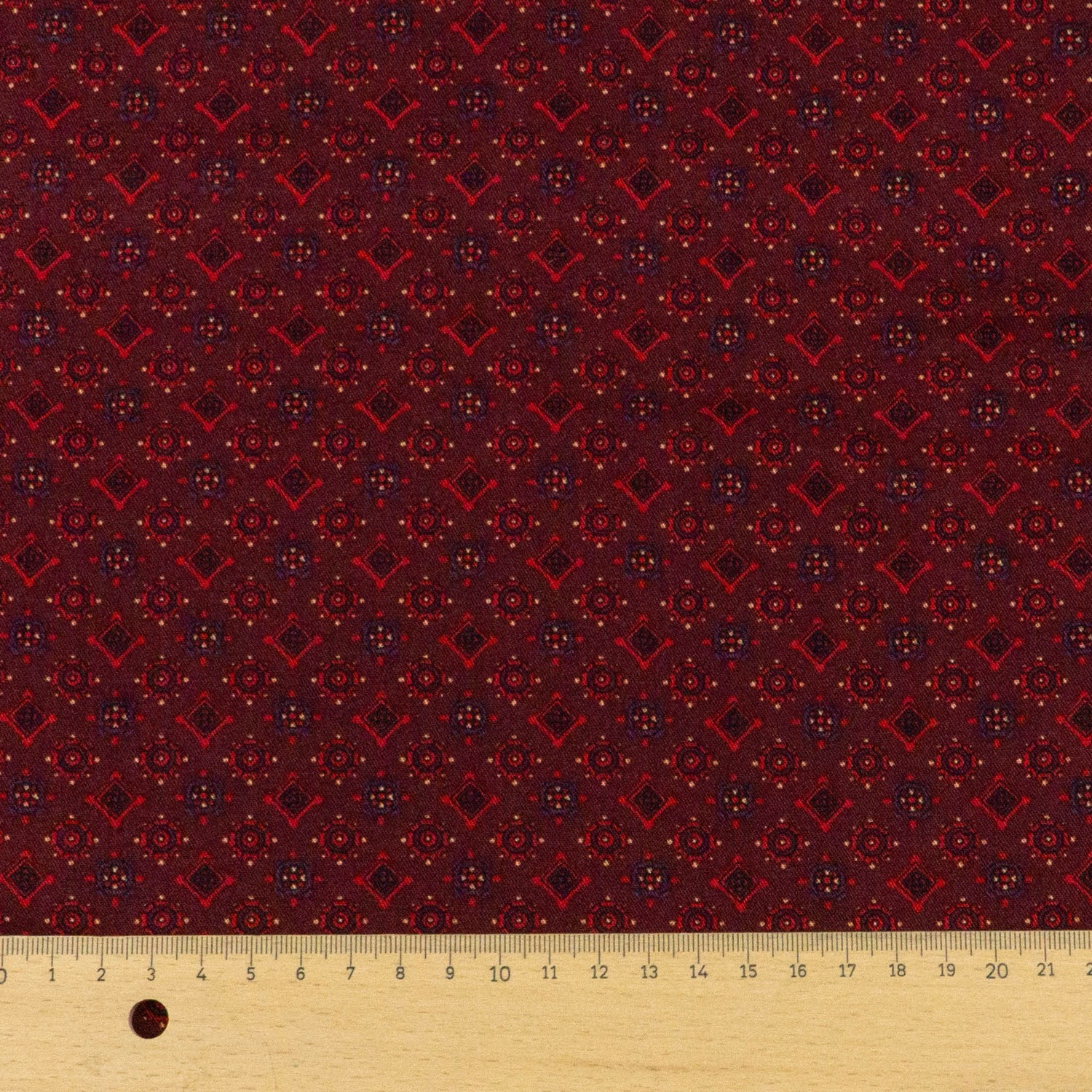 Viskosestoff, Javanaise, schwarz, rottöne, beere dunkel, pastellgelb, grafisch gemustert